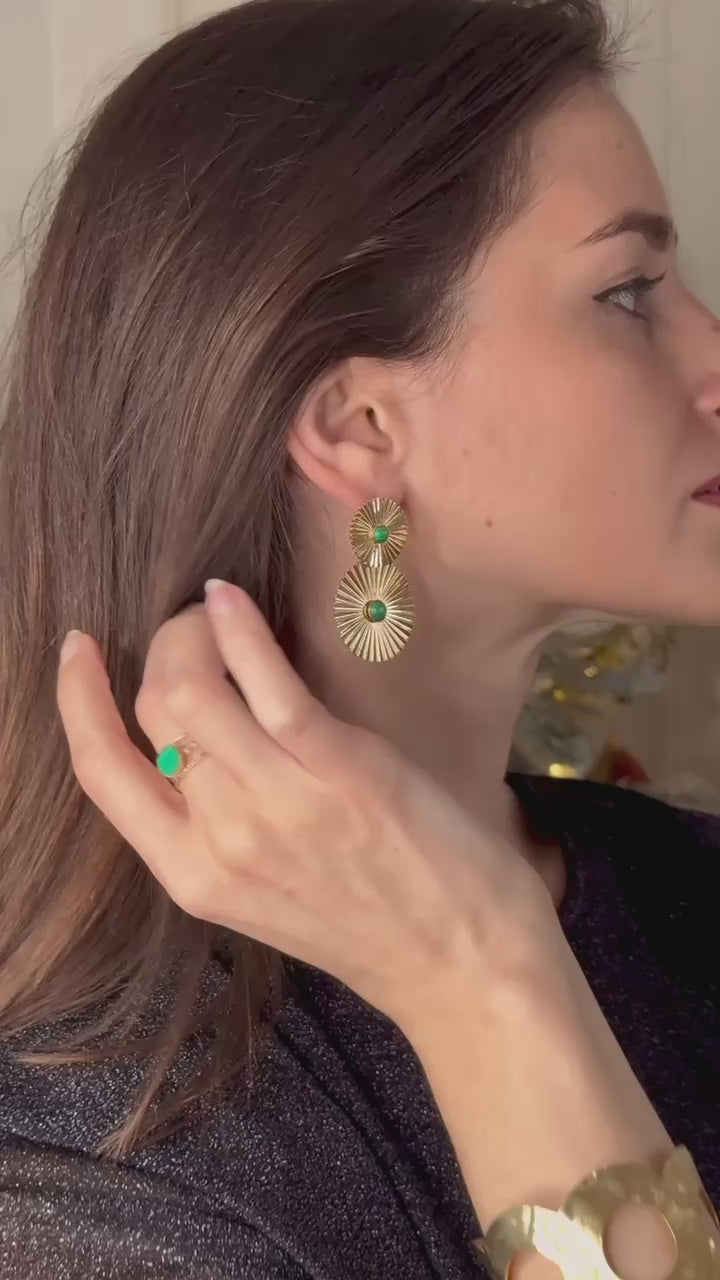 - Boucles d'oreilles en laiton doré à l'or fin et pierres naturelles